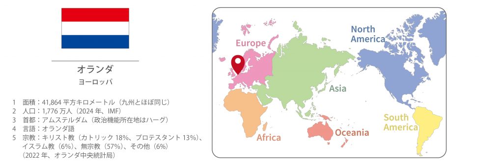 多様性を尊重する寛容な社会と自由主義が特徴。個人の自由や人権が重視され、異なる宗教や文化、性的指向に対して開放的。同性婚や大麻の合法化、安楽死の合法化など、他国と比べ進んだ社会政策を採用している。