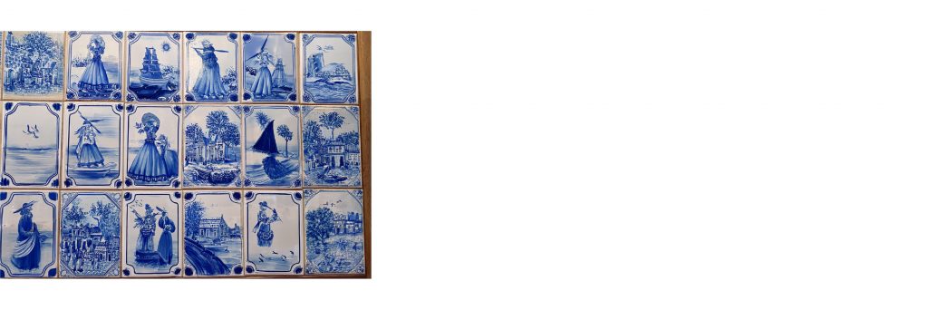 “コーナー・モチーフ”と呼ばれる四隅に描かれた模様と中央に描かれた主題の構成はオランダタイルの特徴といわれています。住宅には欠かせない建材として現在でも活躍しています。