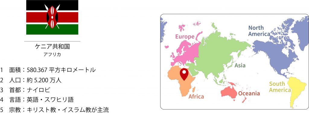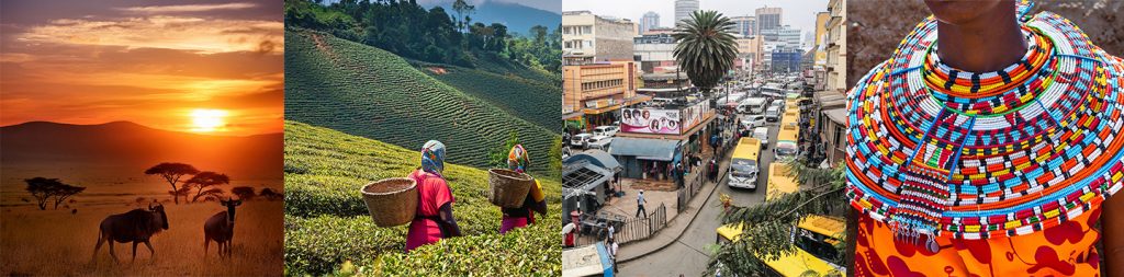 農業、観光業が主要な産業となっています。特にコーヒーや紅茶、園芸作物などの農産物生産が中心となっている産業国です。ケニアで紅茶生産が開始されたのは20 世紀になってからで、現在では、生産量世界第2 位で、スリランカを上回ります。お茶の栽培に適した自然環境と豊富な労働力、さらに新興国のため近代的な設備と技術を揃えることができ、ケニアの紅茶生産量の伸びは、他の諸国を圧倒しています。また、サバンナ地帯のイメージを持つ人も多いですが、実際には国土の一部にしかすぎません。